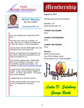 08/12/17 Meeting Membership Chairperson Report