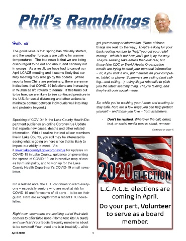 Speaking of COVID-19, the Lake County Health De- · Don’t be rushed. Whatever the call, email,